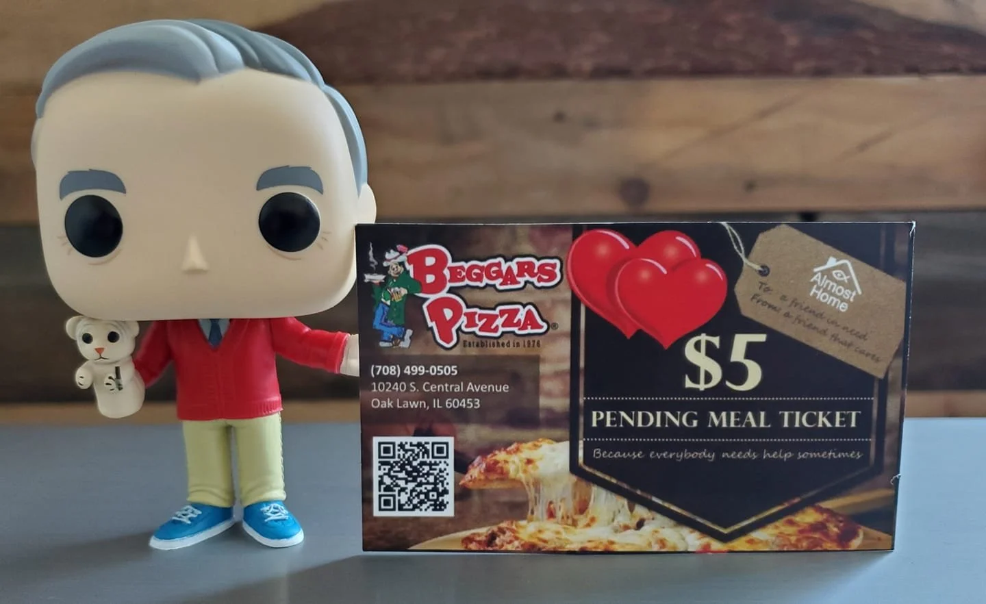Almost Home Chicago has partnered with Beggars of Oak Lawn at 10240 Central Avenue (708) 499-0505 to provide hot meals for the area homeless and food insecure. A meal includes a jumbo slice of pizza and a pop.